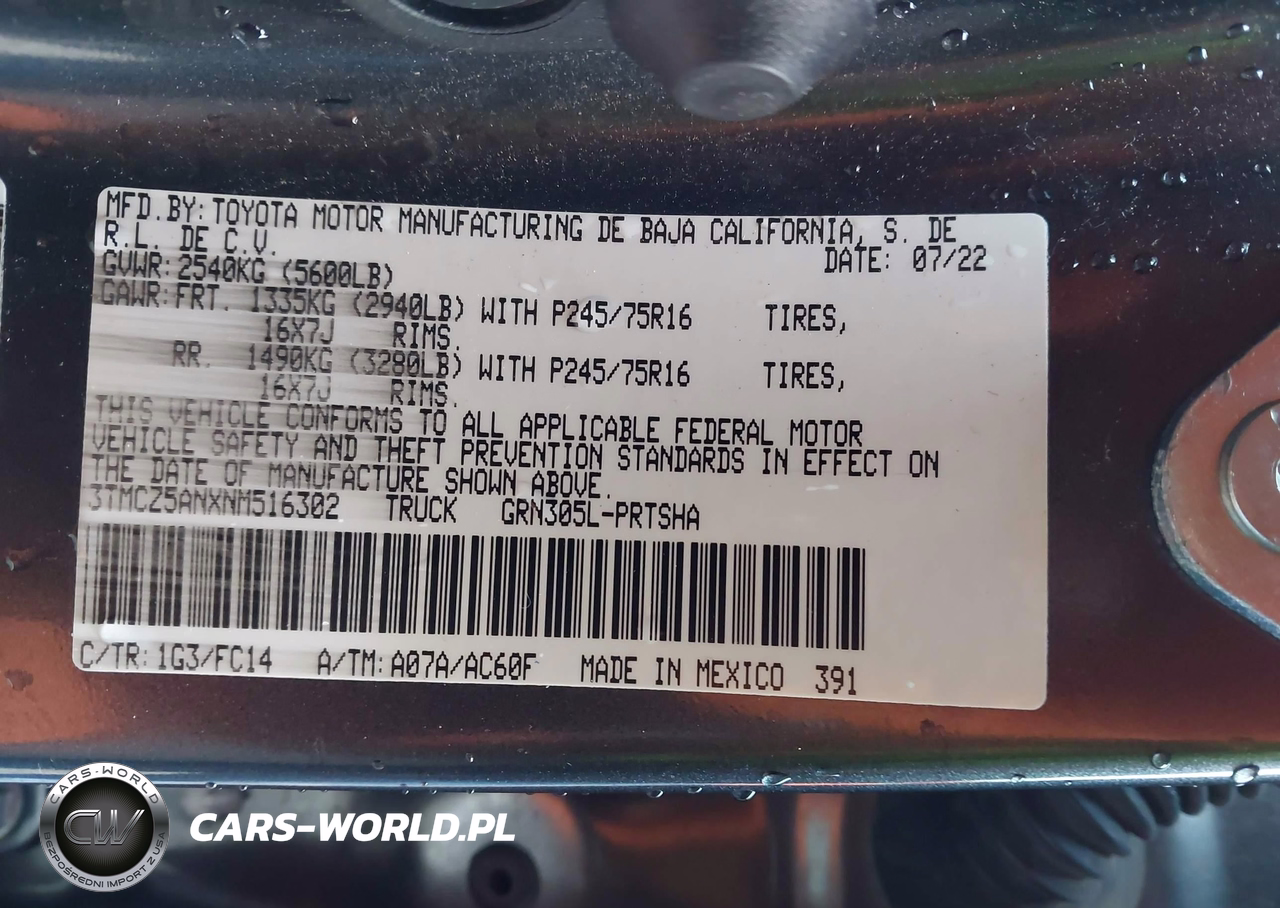 IAAI Nr: I-44411928 VIN: 3TMCZ5ANXNM516302 Port: Los Angeles, CA