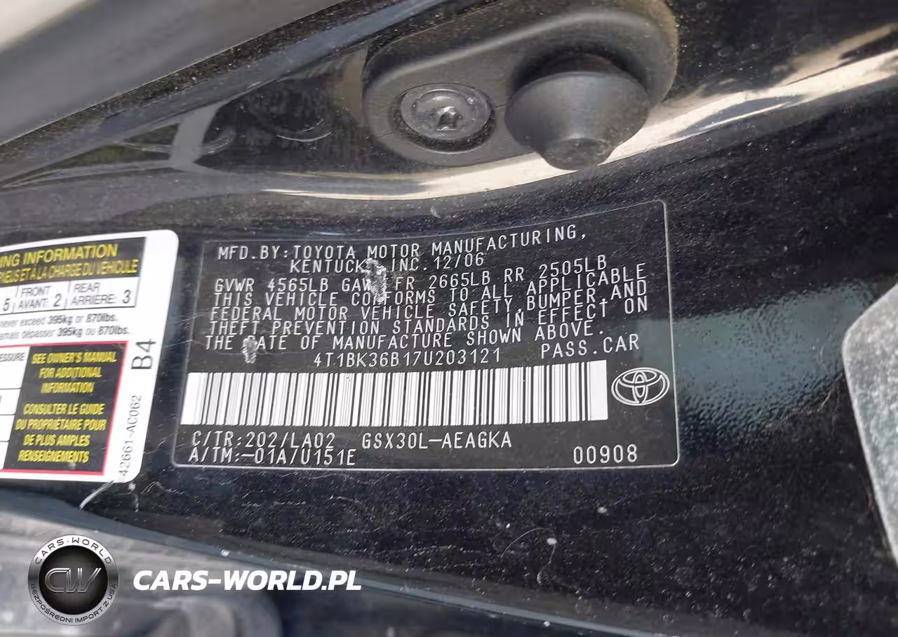 IAAI Nr: I-44412611 VIN: 4T1BK36B17U203121 Port: Houston, TX
