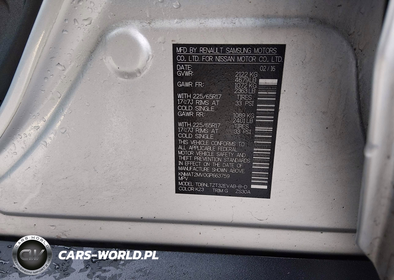IAAI Nr: I-44415680 VIN: KNMAT2MV0GP663759 Port: Elizabeth, NJ