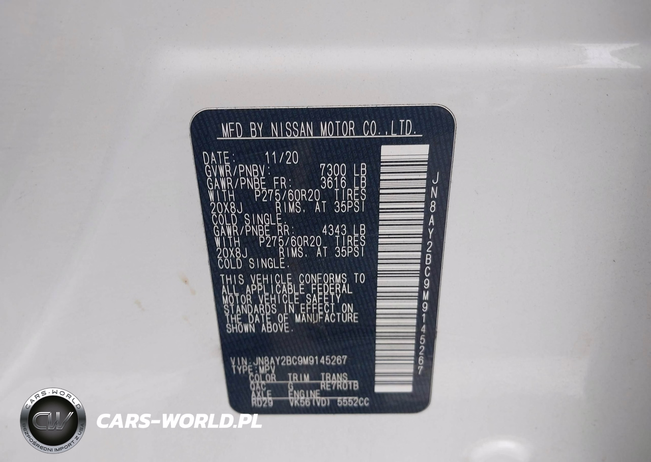IAAI Nr: I-44416332 VIN: JN8AY2BC9M9145267 Port: Savannah, GA