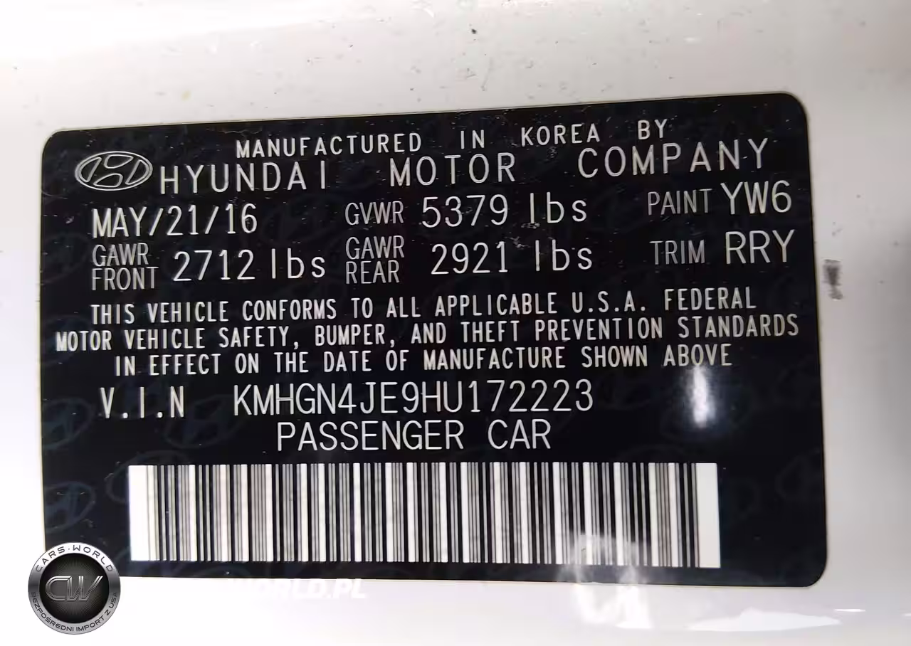 IAAI Nr: I-44416396 VIN: KMHGN4JE9HU172223 Port: Los Angeles, CA