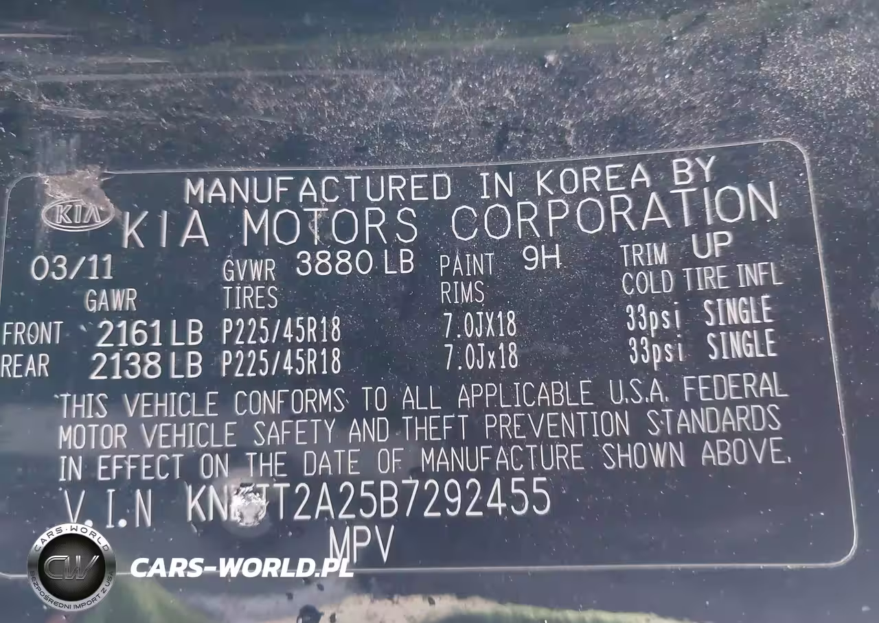 IAAI Nr: I-44416801 VIN: KNDJT2A25B7292455 Port: Los Angeles, CA