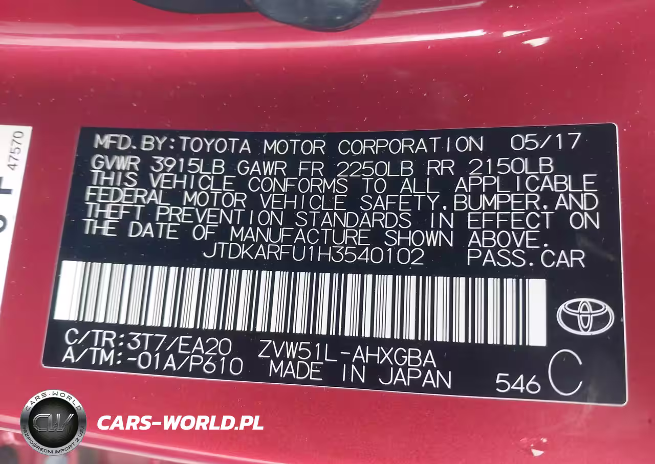 IAAI Nr: I-44419341 VIN: JTDKARFU1H3540102 Port: Los Angeles, CA