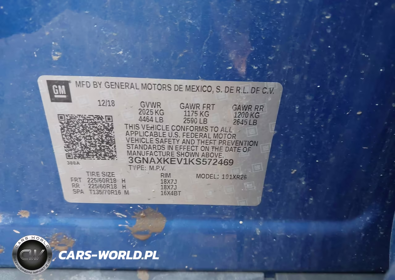 IAAI Nr: I-44419379 VIN: 3GNAXKEV1KS572469 Port: Indianapolis, IN