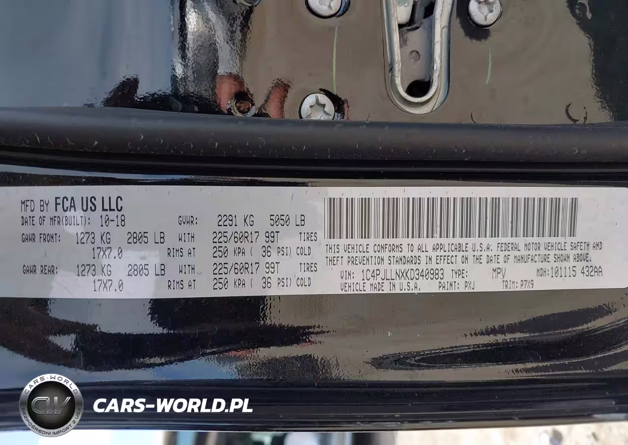 IAAI Nr: I-44419464 VIN: 1C4PJLLNXKD340983 Port: Houston, TX