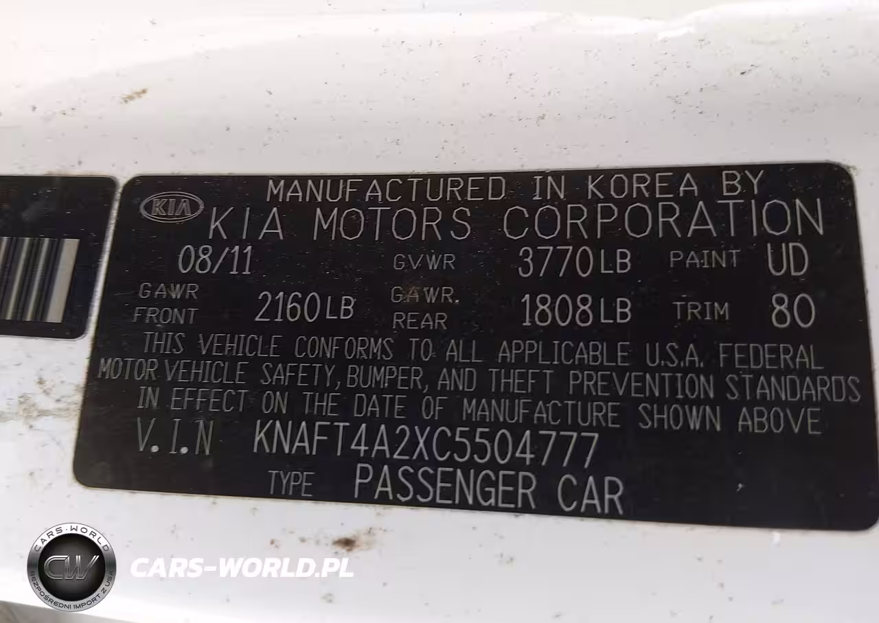 IAAI Nr: I-44419507 VIN: KNAFT4A2XC5504777 Port: Savannah, GA