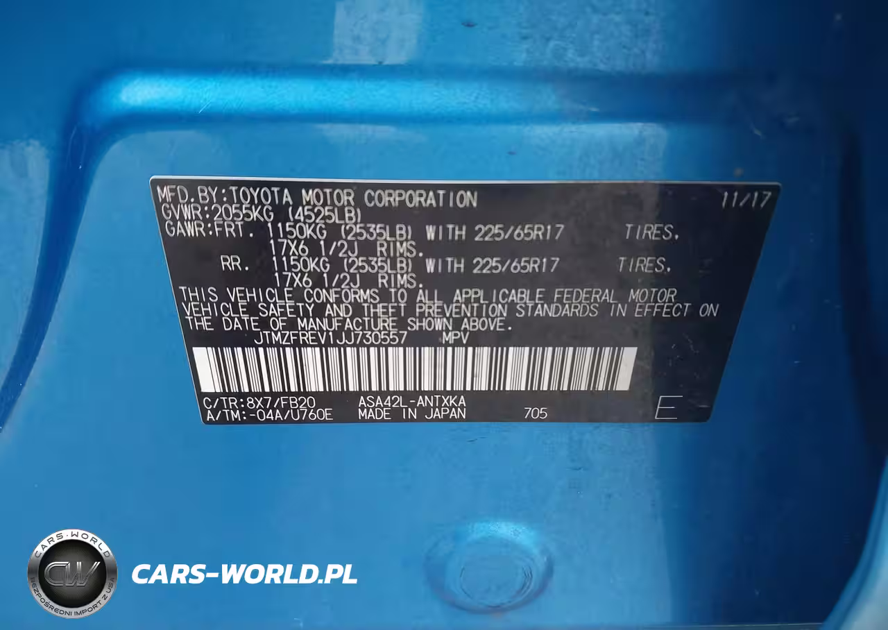 IAAI Nr: I-44419962 VIN: JTMZFREV1JJ730557 Port: Houston, TX