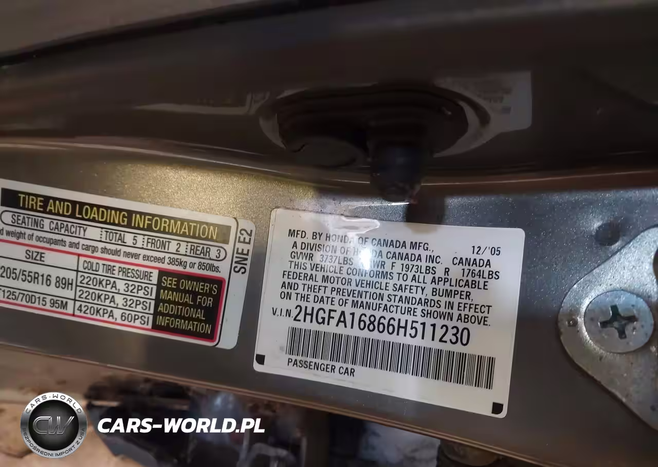 IAAI Nr: I-44421082 VIN: 2HGFA16866H511230 Port: Indianapolis, IN