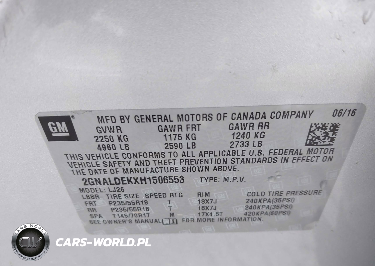 IAAI Nr: I-44421333 VIN: 2GNALDEKXH1506553 Port: Elizabeth, NJ