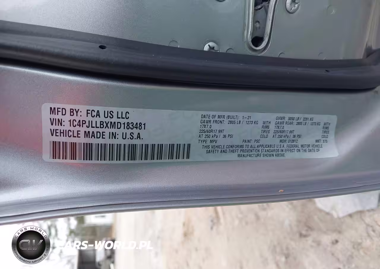 IAAI Nr: I-44422573 VIN: 1C4PJLLBXMD183481 Port: Savannah, GA