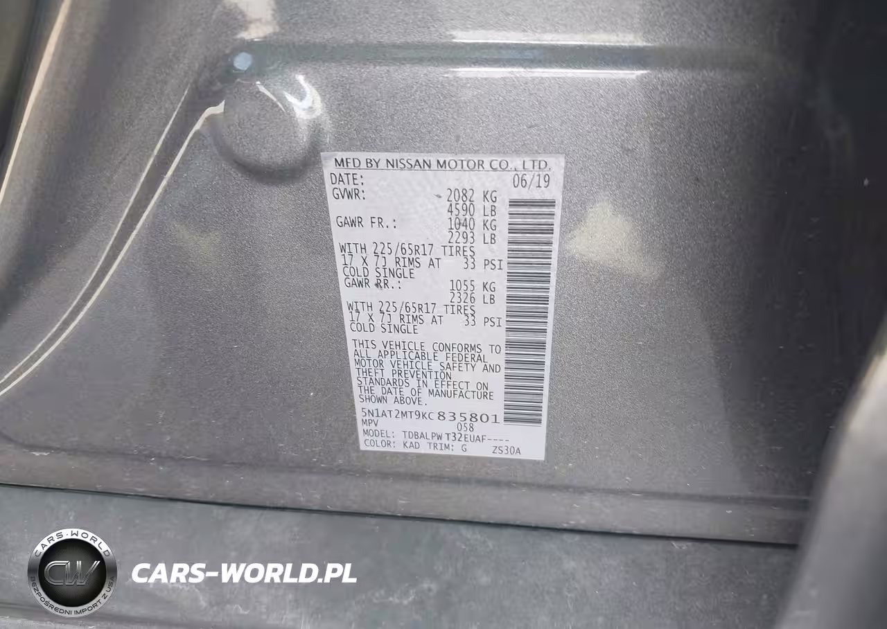 IAAI Nr: I-44423439 VIN: 5N1AT2MT9KC835801 Port: Houston, TX