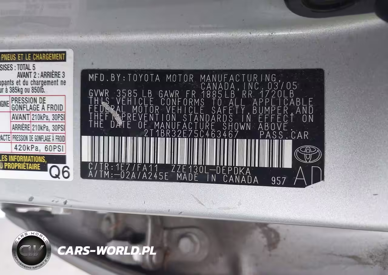 IAAI Nr: I-44424903 VIN: 2T1BR32E75C463467 Port: Elizabeth, NJ