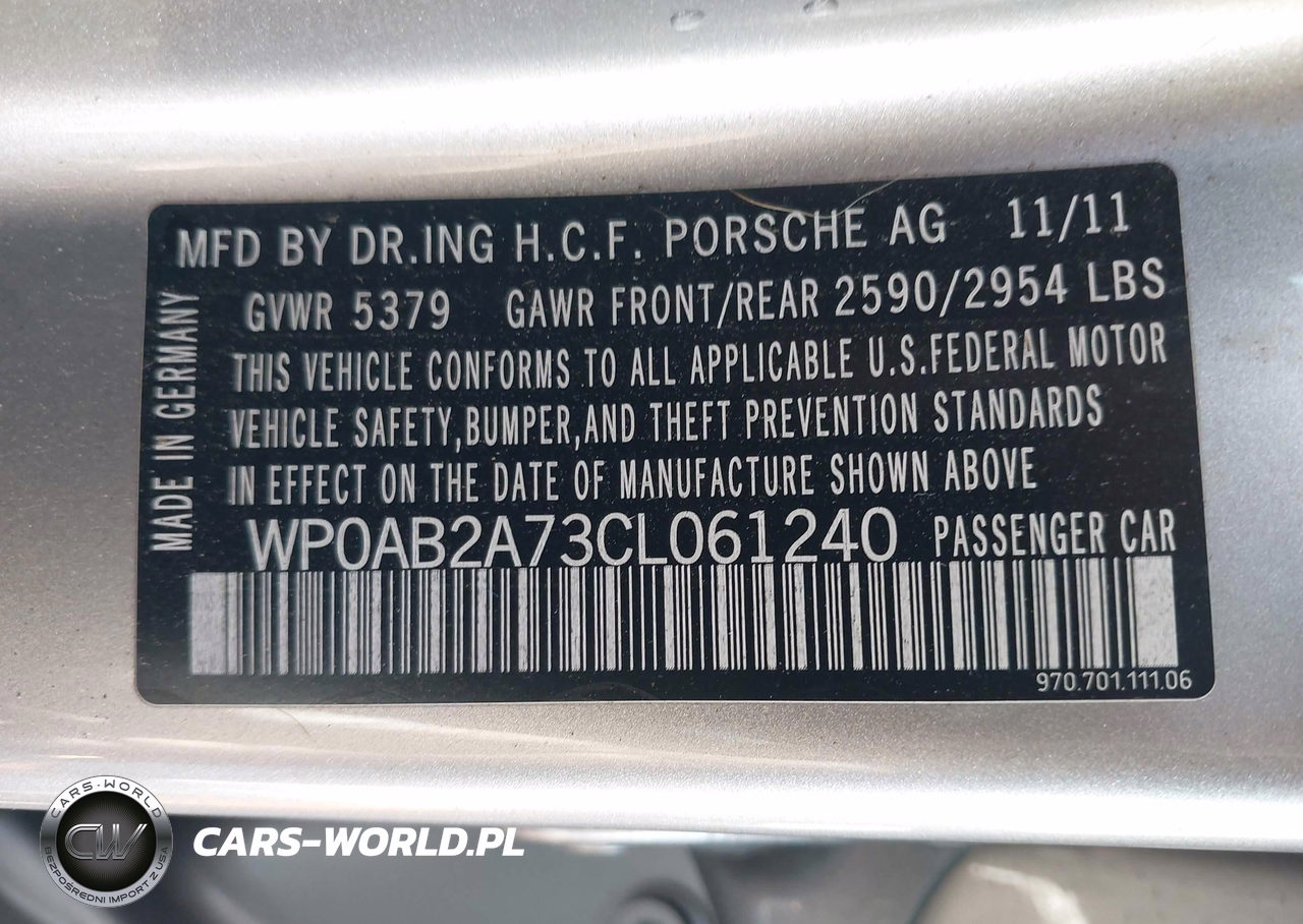 IAAI Nr: I-44426572 VIN: WP0AB2A73CL061240 Port: Los Angeles, CA