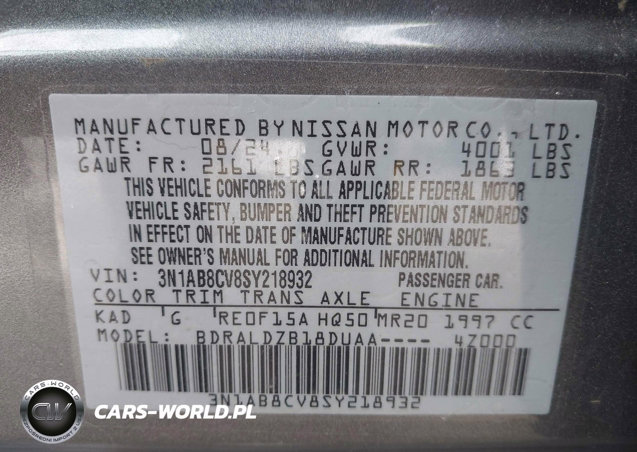 IAAI Nr: I-44426902 VIN: 3N1AB8CV8SY218932 Port: Elizabeth, NJ