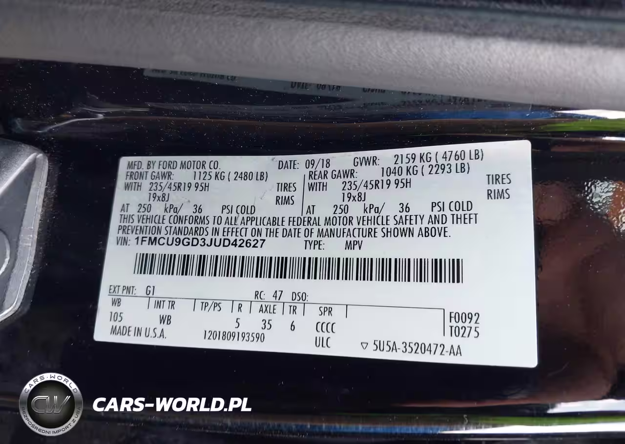 IAAI Nr: I-44426907 VIN: 1FMCU9GD3JUD42627 Port: Indianapolis, IN