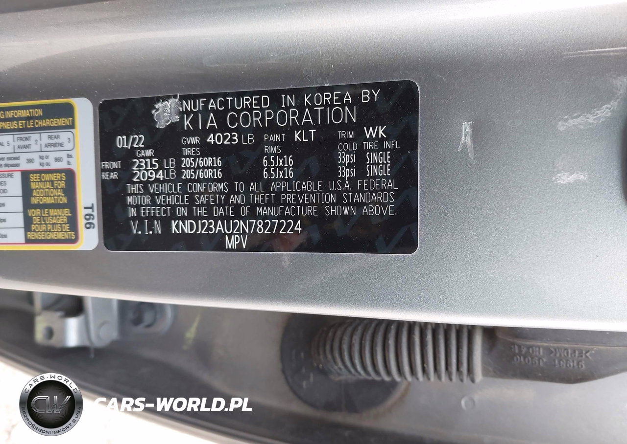 IAAI Nr: I-44427172 VIN: KNDJ23AU2N7827224 Port: Indianapolis, IN