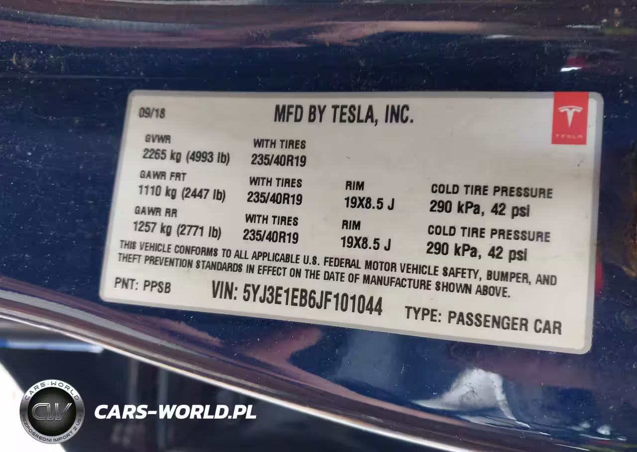 IAAI Nr: I-44427420 VIN: 5YJ3E1EB6JF101044 Port: Los Angeles, CA
