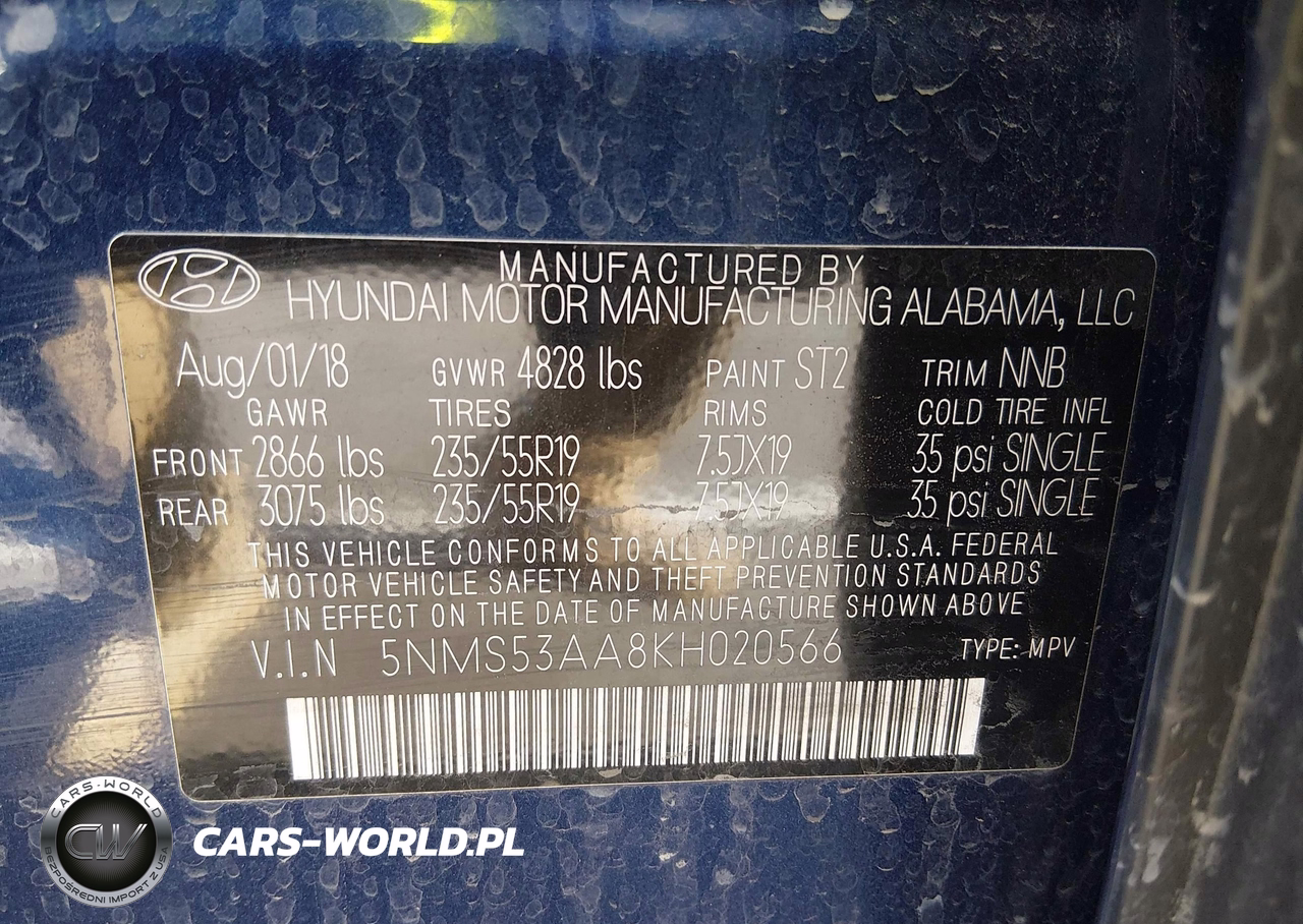 IAAI Nr: I-44427478 VIN: 5NMS53AA8KH020566 Port: Los Angeles, CA