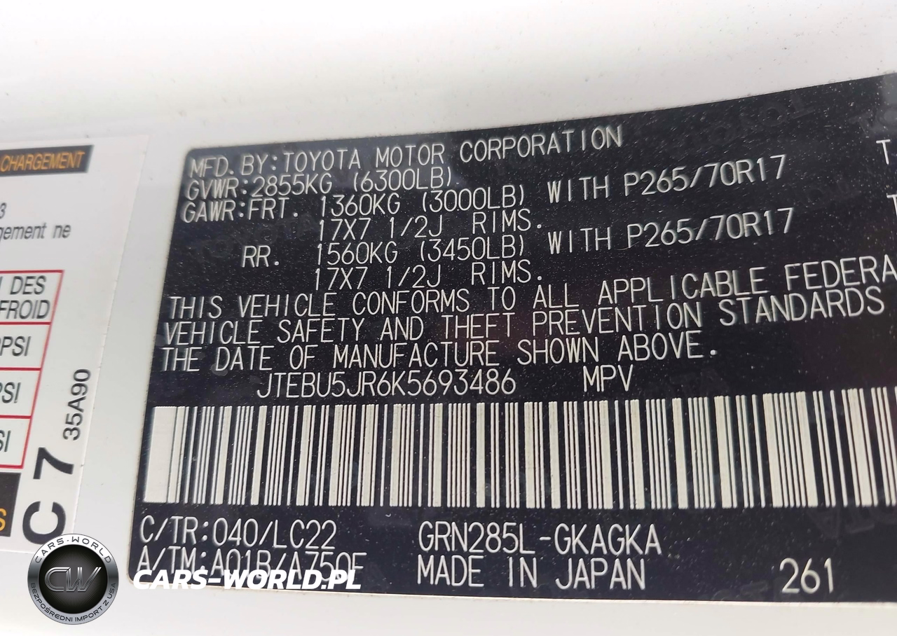 IAAI Nr: I-44427698 VIN: JTEBU5JR6K5693486 Port: Houston, TX
