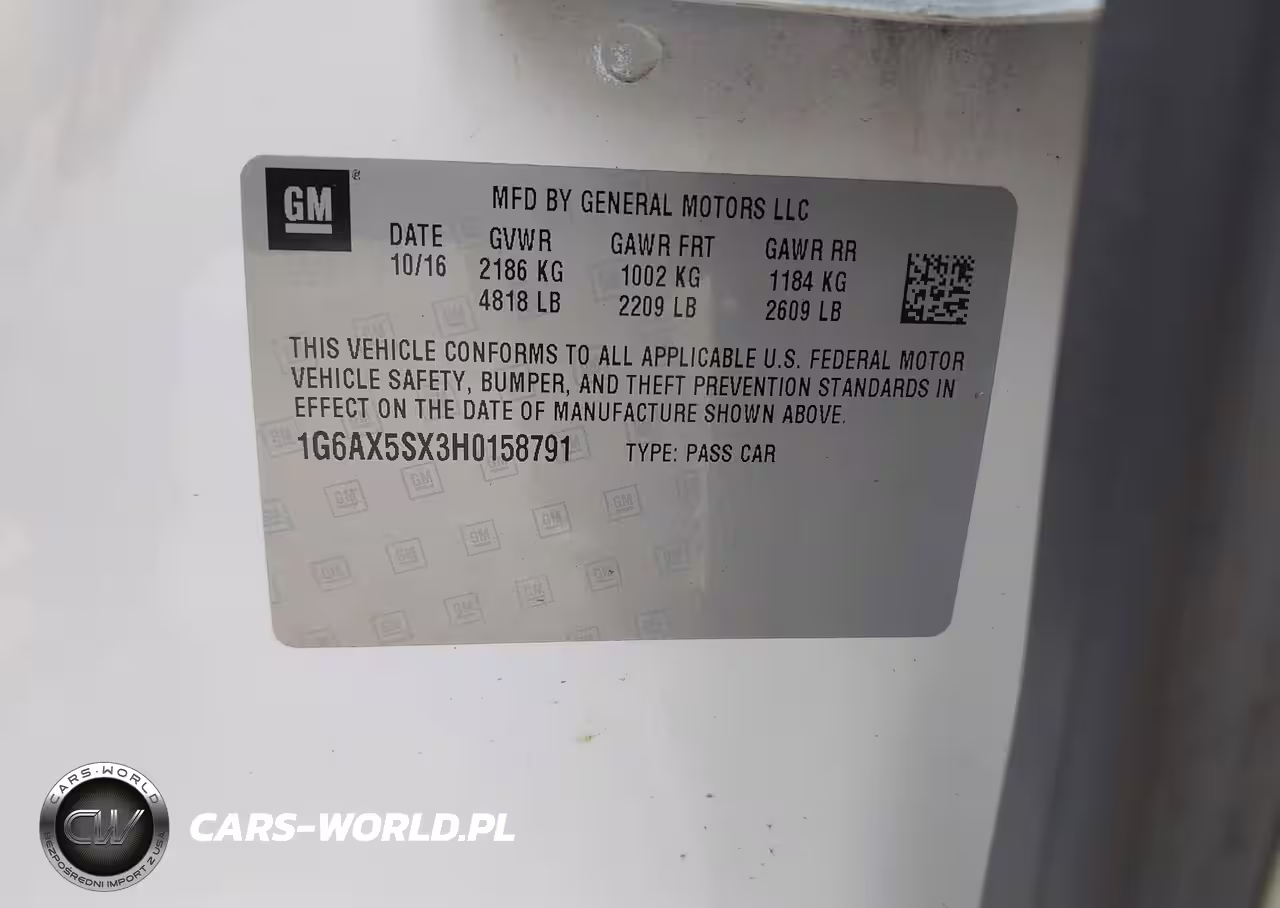 IAAI Nr: I-44428501 VIN: 1G6AX5SX3H0158791 Port: Houston, TX