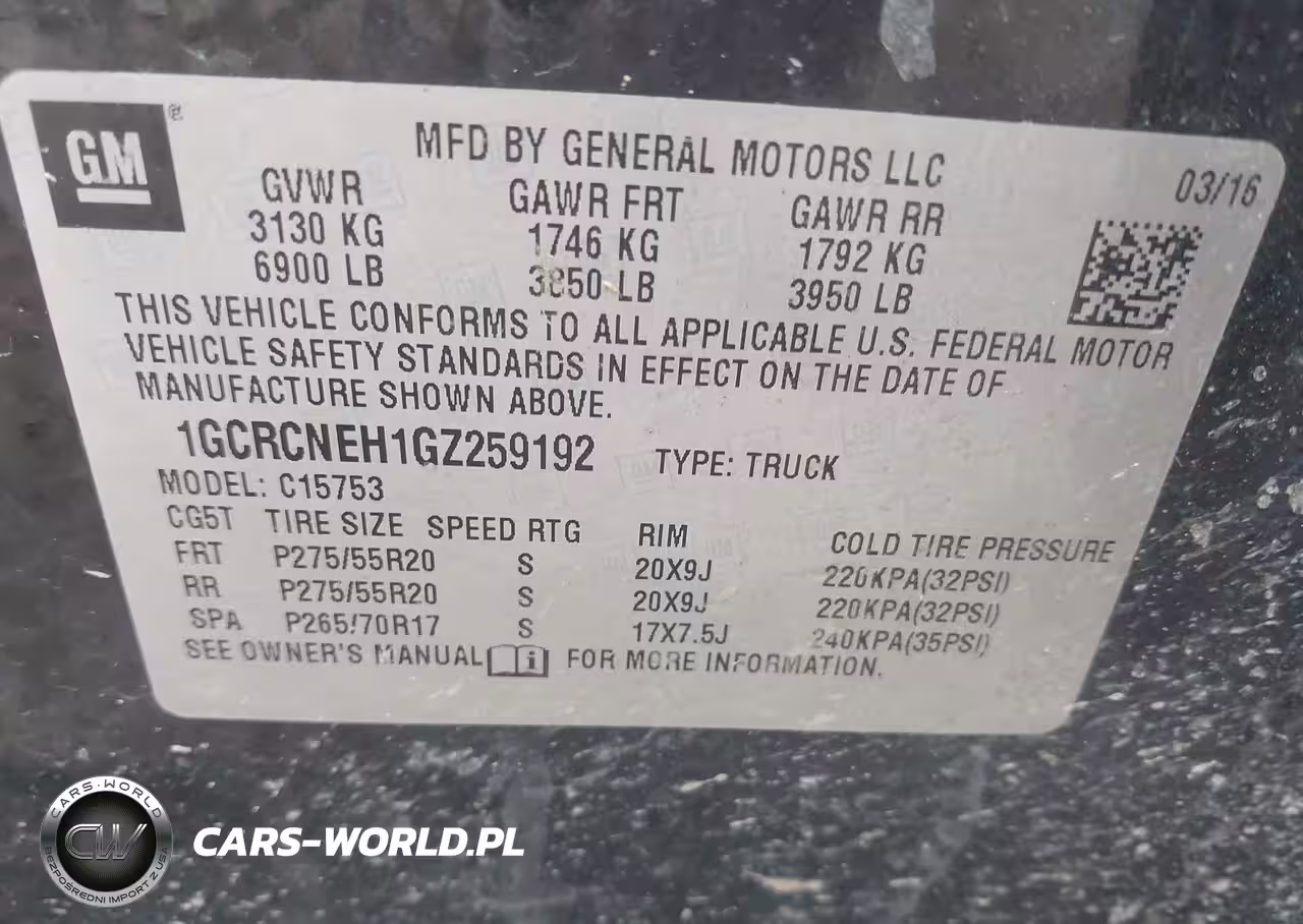 IAAI Nr: I-44428663 VIN: 1GCRCNEH1GZ259192 Port: Indianapolis, IN