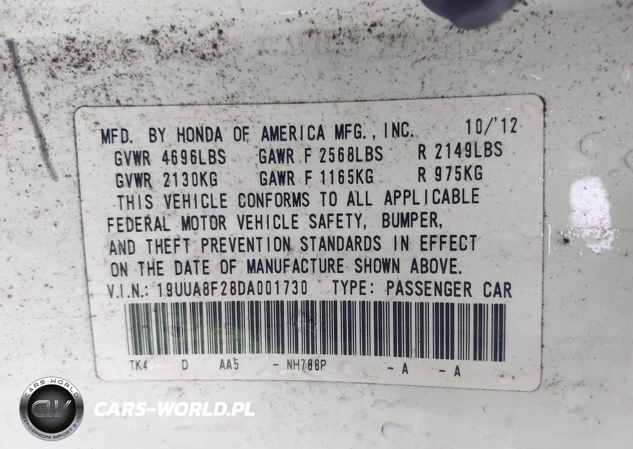 IAAI Nr: I-44428971 VIN: 19UUA8F28DA001730 Port: Savannah, GA