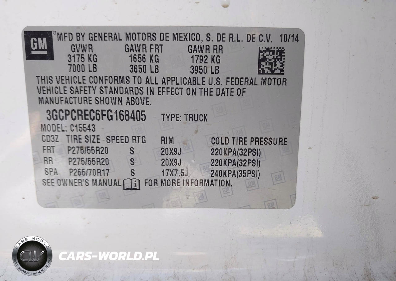 IAAI Nr: I-44429421 VIN: 3GCPCREC6FG168405 Port: Houston, TX