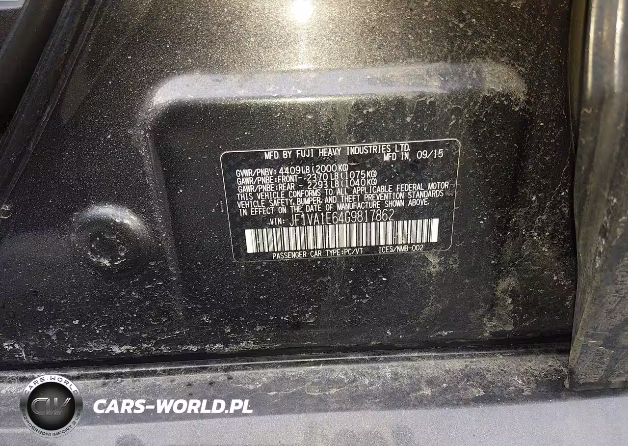 IAAI Nr: I-44430223 VIN: JF1VA1E64G9817862 Port: Elizabeth, NJ
