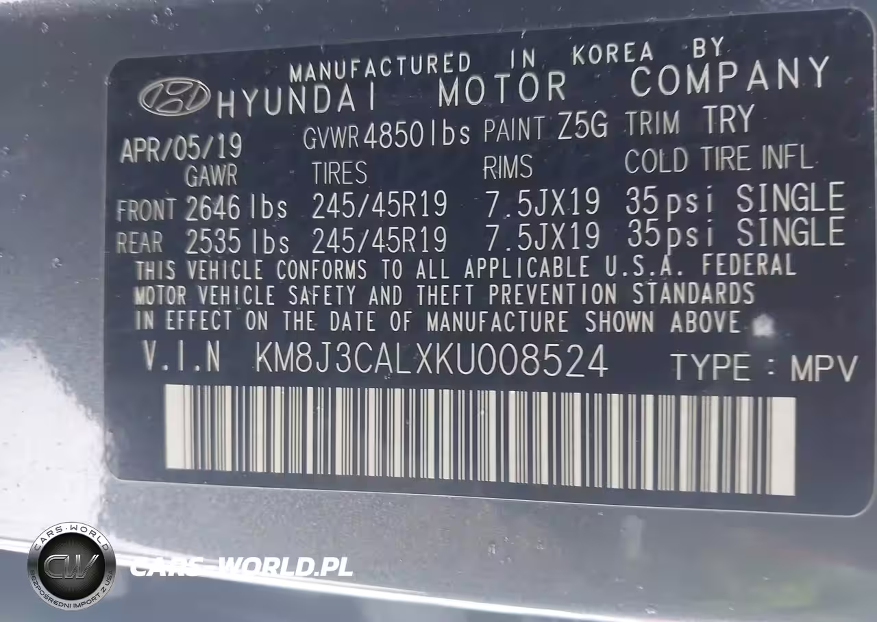 IAAI Nr: I-44431372 VIN: KM8J3CALXKU008524 Port: Elizabeth, NJ