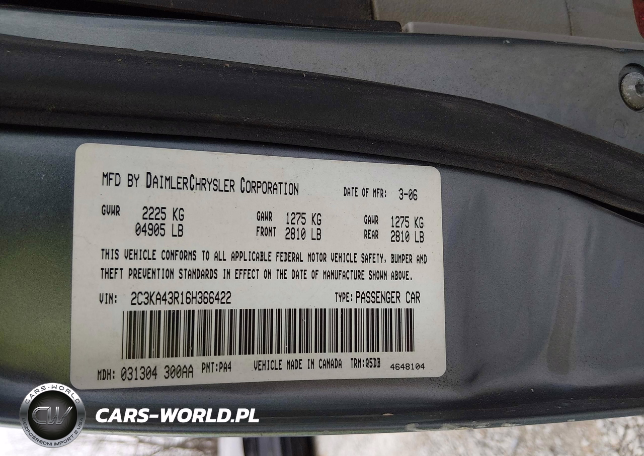 IAAI Nr: I-44433265 VIN: 2C3KA43R16H366422 Port: Savannah, GA