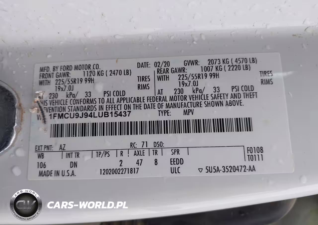 IAAI Nr: I-44435285 VIN: 1FMCU9J94LUB15437 Port: Houston, TX
