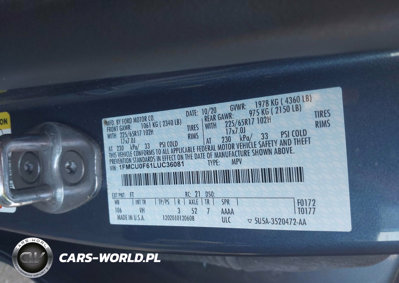 IAAI Nr: I-44435786 VIN: 1FMCU0F61LUC36081 Port: Savannah, GA