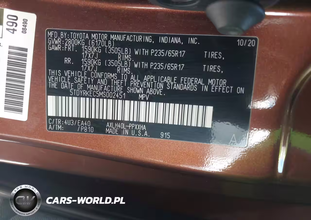 IAAI Nr: I-44436004 VIN: 5TDYRKEC5MS002451 Port: Houston, TX