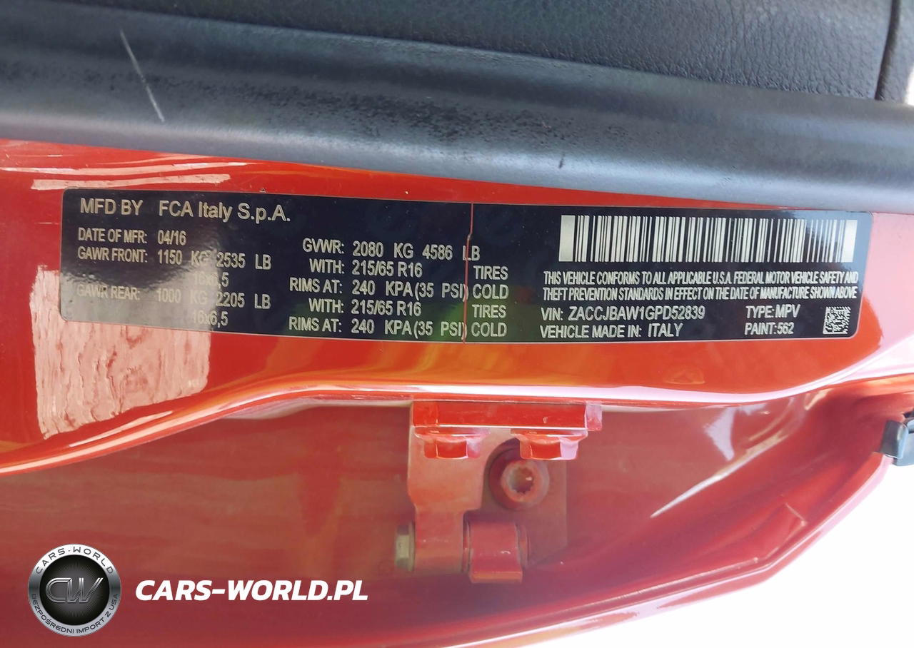 IAAI Nr: I-44436242 VIN: ZACCJBAW1GPD52839 Port: Indianapolis, IN