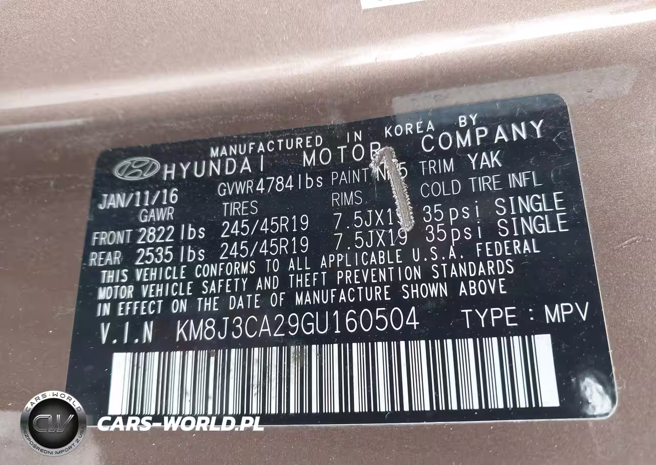 IAAI Nr: I-44437233 VIN: KM8J3CA29GU160504 Port: Los Angeles, CA