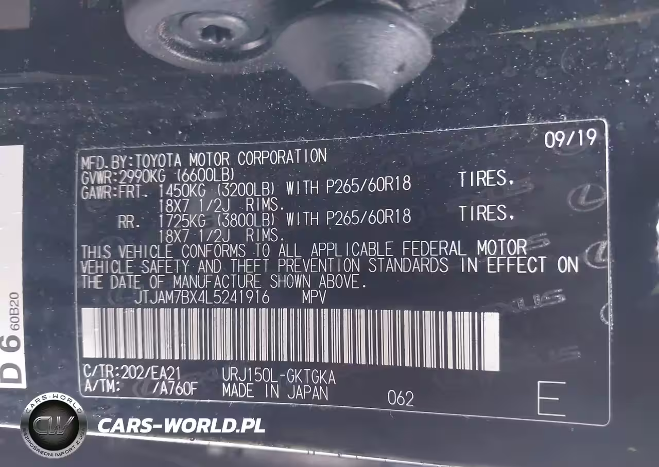 IAAI Nr: I-44438708 VIN: JTJAM7BX4L5241916 Port: Elizabeth, NJ