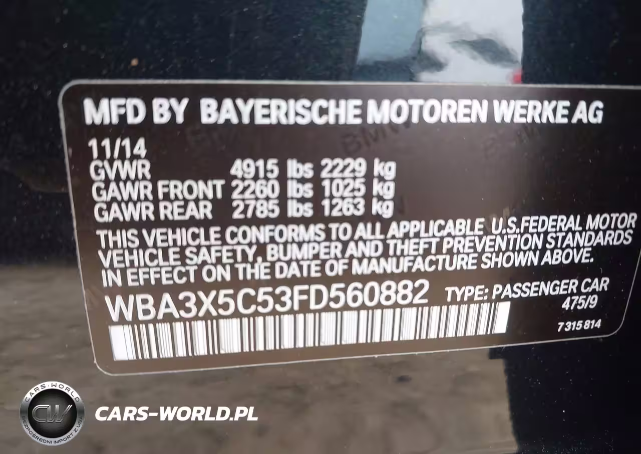 IAAI Nr: I-44438859 VIN: WBA3X5C53FD560882 Port: Elizabeth, NJ