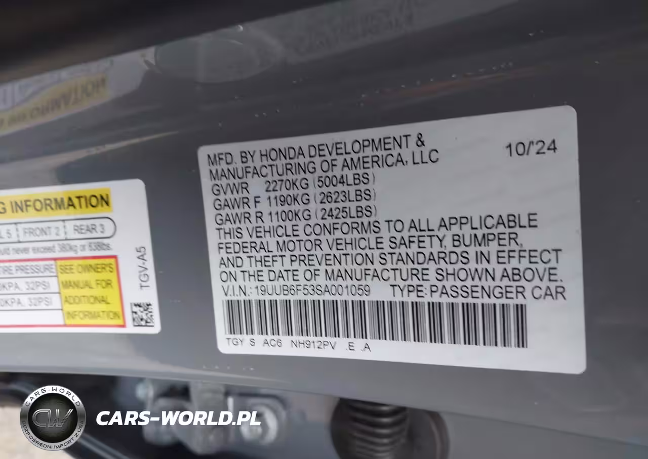 IAAI Nr: I-44440189 VIN: 19UUB6F53SA001059 Port: Elizabeth, NJ