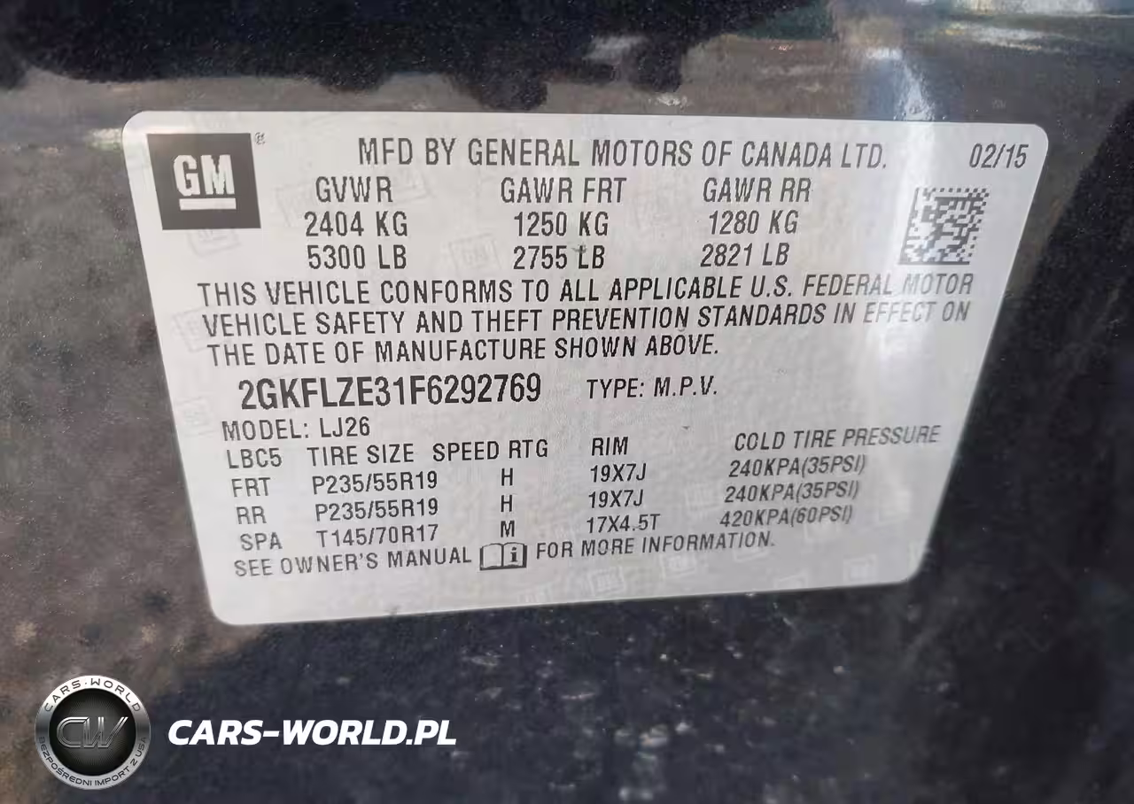 IAAI Nr: I-44440371 VIN: 2GKFLZE31F6292769 Port: Elizabeth, NJ