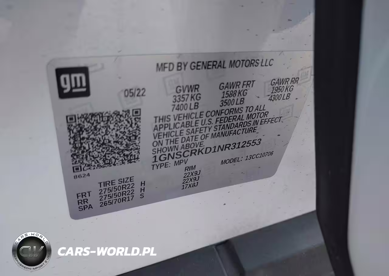 IAAI Nr: I-44440628 VIN: 1GNSCRKD1NR312553 Port: Savannah, GA