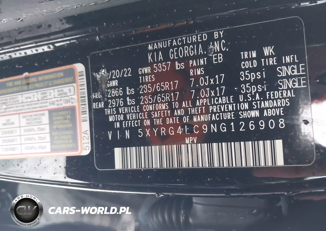 IAAI Nr: I-44440653 VIN: 5XYRG4LC9NG126908 Port: Elizabeth, NJ