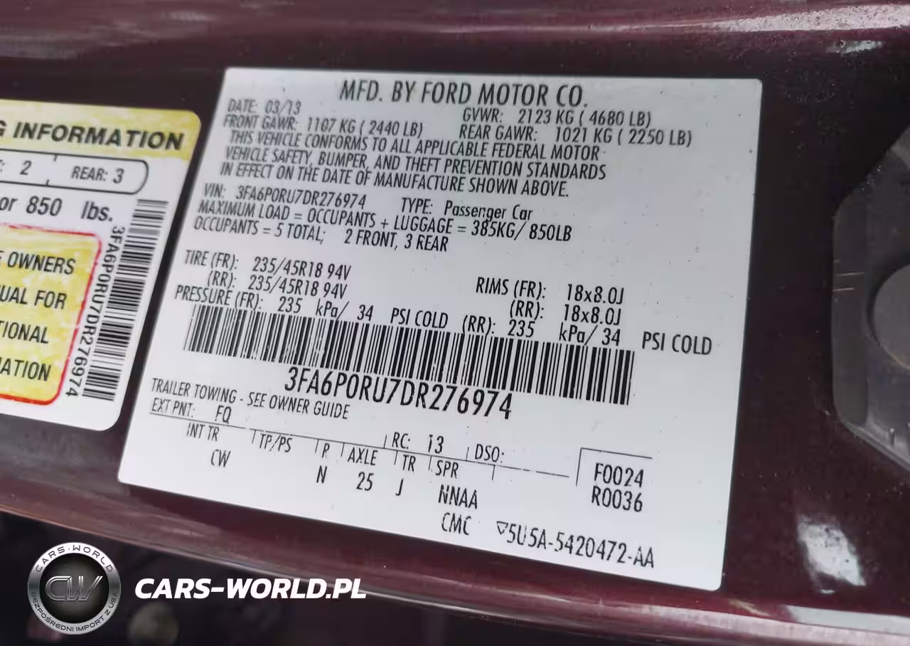 IAAI Nr: I-44441260 VIN: 3FA6P0RU7DR276974 Port: Elizabeth, NJ