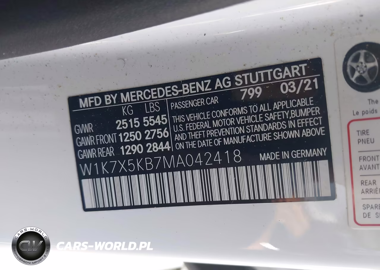 IAAI Nr: I-44441643 VIN: W1K7X5KB7MA042418 Port: Savannah, GA