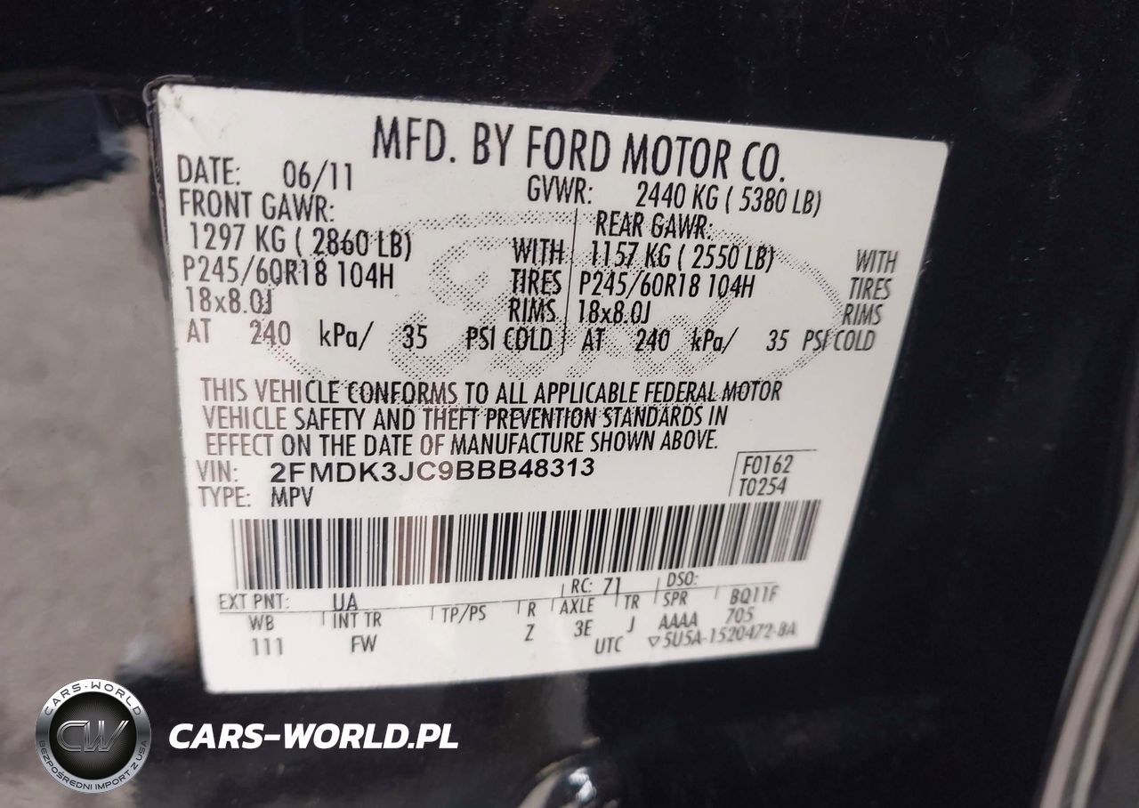 IAAI Nr: I-44441657 VIN: 2FMDK3JC9BBB48313 Port: Los Angeles, CA