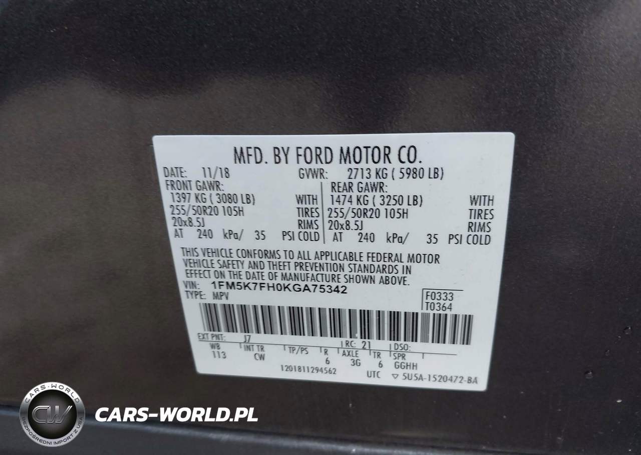 IAAI Nr: I-44442699 VIN: 1FM5K7FH0KGA75342 Port: Savannah, GA