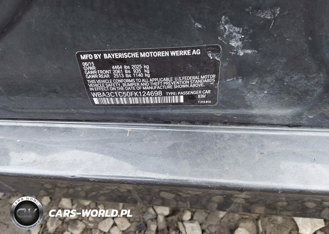 IAAI Nr: I-44443213 VIN: WBA3C1C50FK124698 Port: Los Angeles, CA