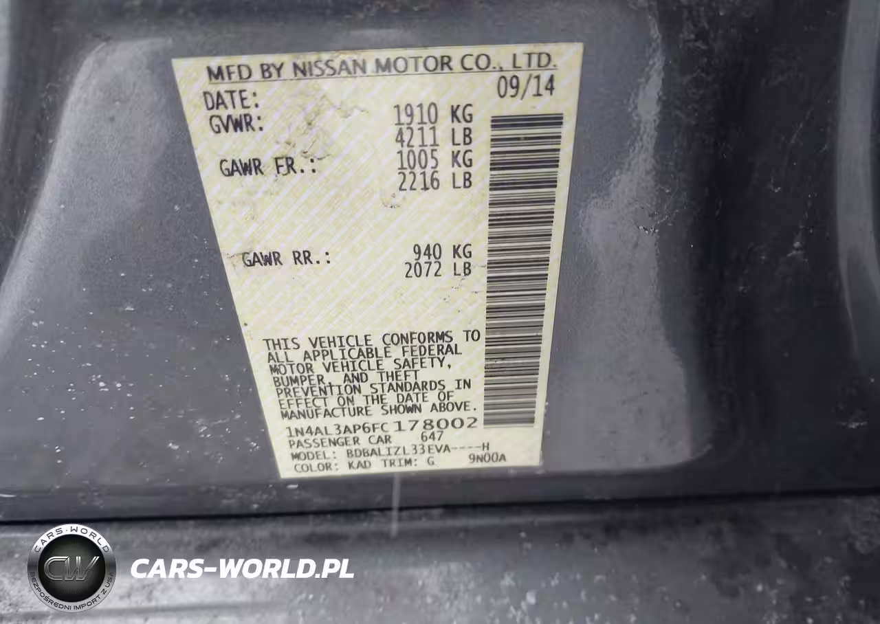 IAAI Nr: I-44445721 VIN: 1N4AL3AP6FC178002 Port: Elizabeth, NJ