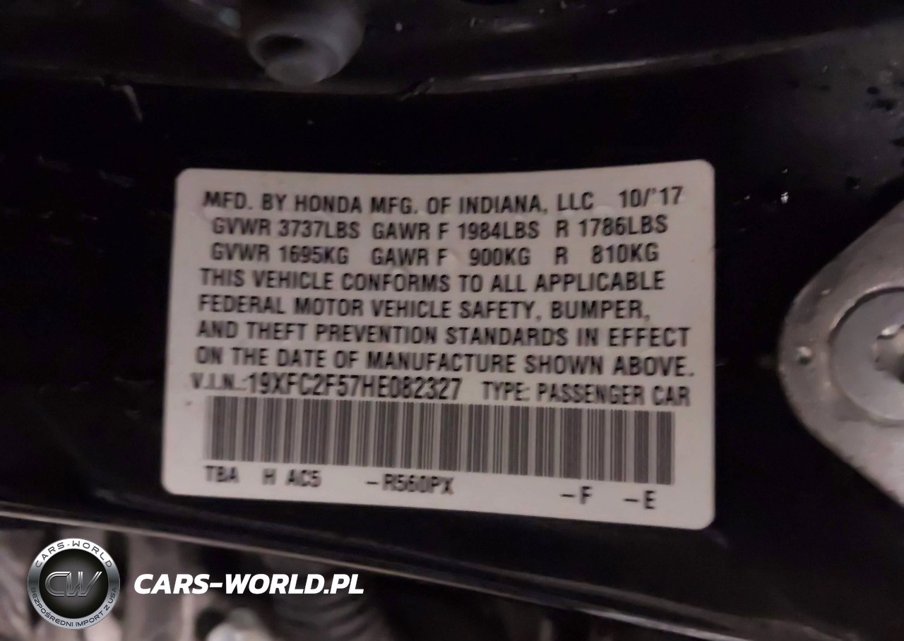 IAAI Nr: I-44446048 VIN: 19XFC2F57HE082327 Port: Indianapolis, IN