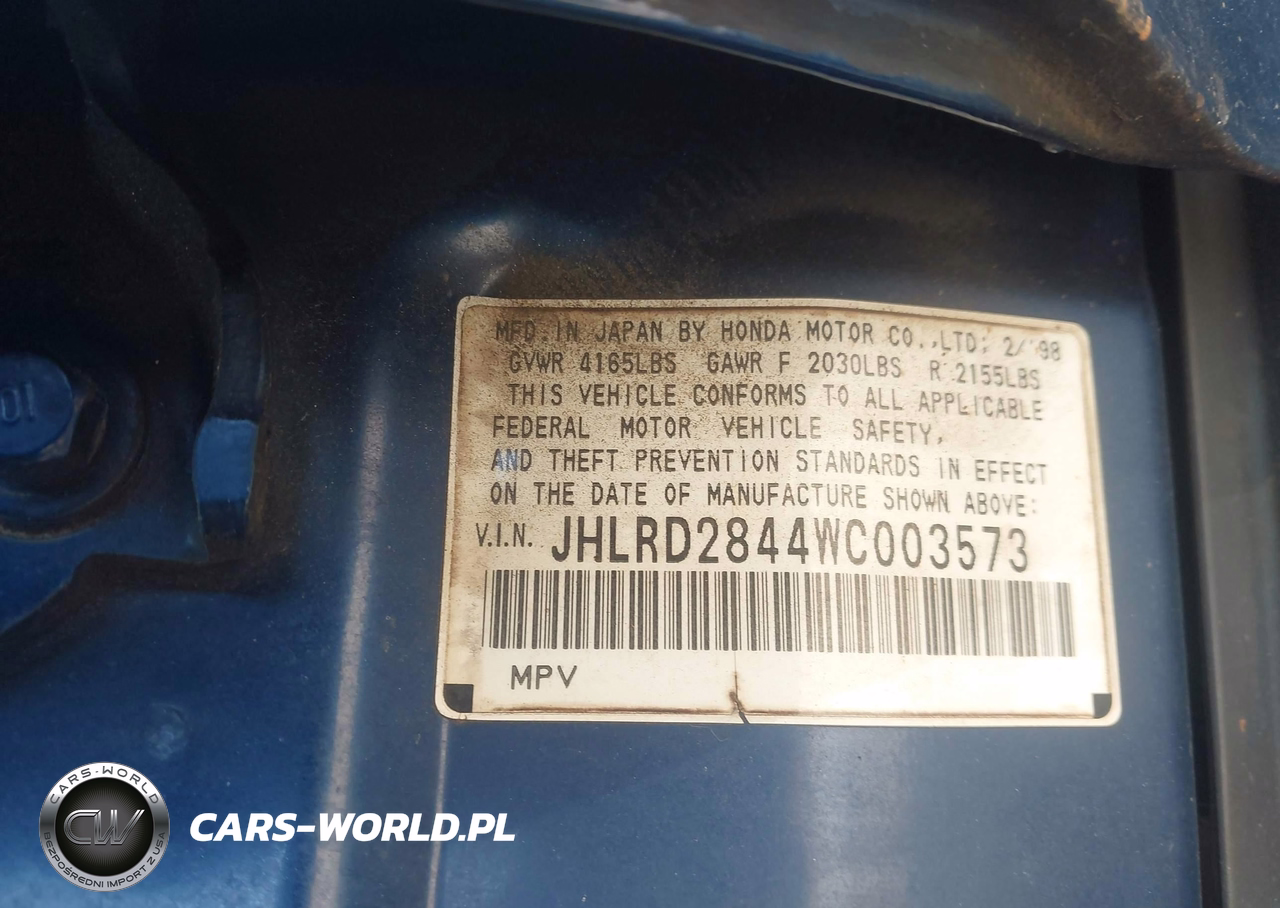 IAAI Nr: I-44446715 VIN: JHLRD2844WC003573 Port: Savannah, GA