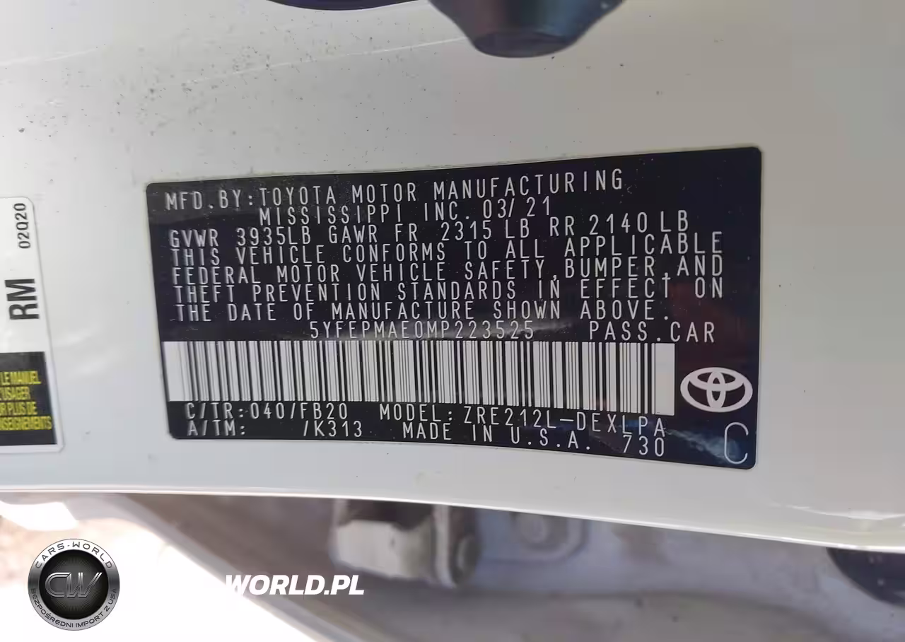 IAAI Nr: I-44449918 VIN: 5YFEPMAE0MP223525 Port: Houston, TX